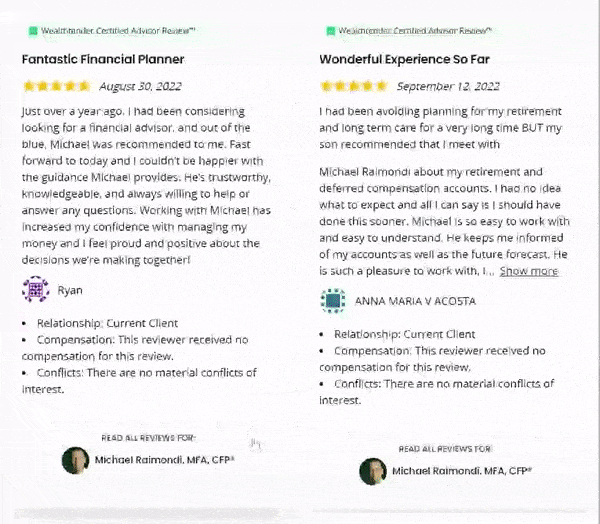 Instead of using an embed widget to display testimonials, other advisors have chosen to create a testimonial page using designs they created within Wealthtender Testimonial Marketing Studio.