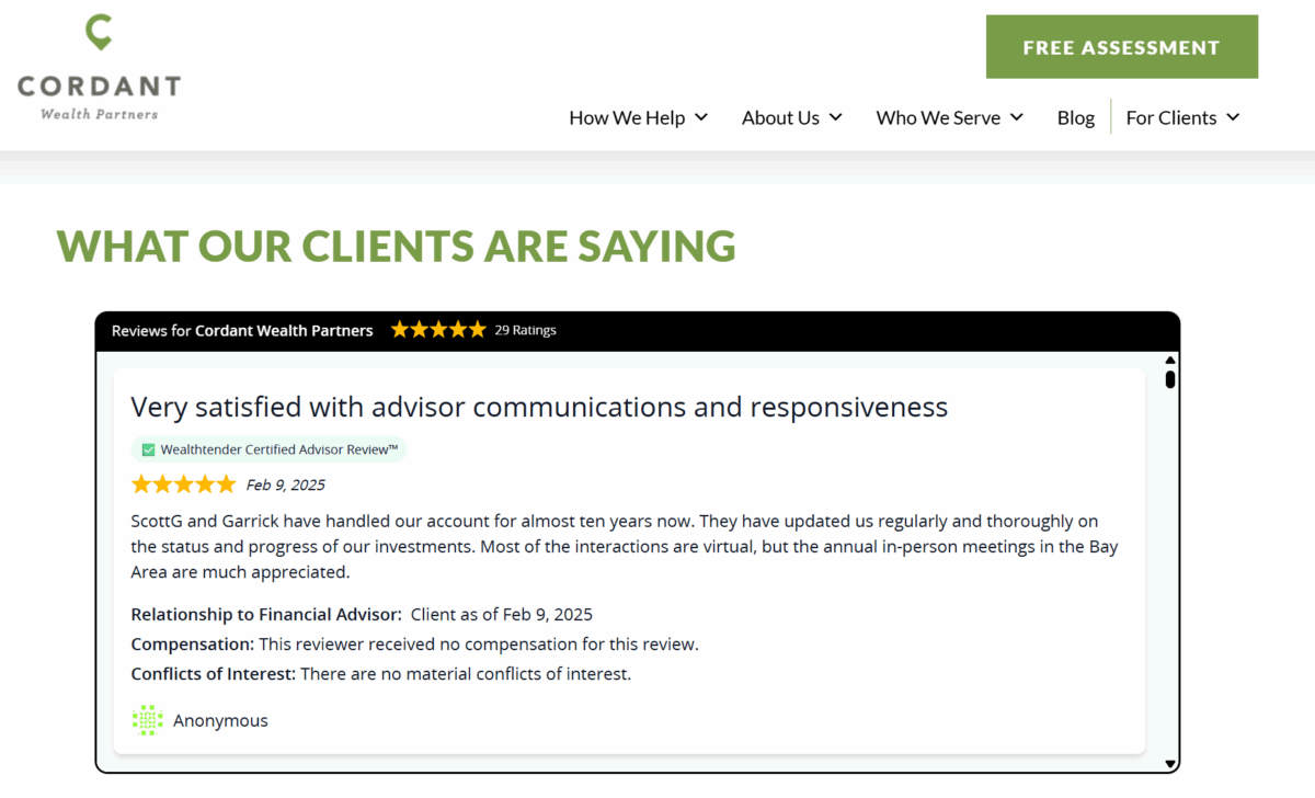 Screenshot Example: Cordant Wealth Partners