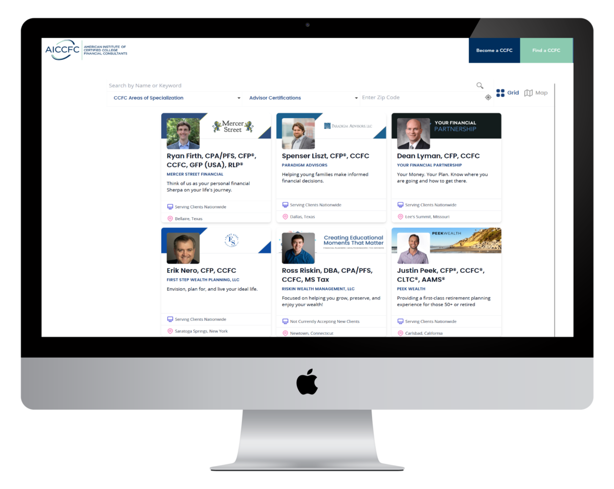 The American Institute of Certified College Financial Consultants (AICCFC) counts on Wealthtender to help consumers find CCFC credential holders nationwide.